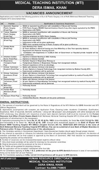 Both Male and Female candidates can apply for this Medical Teaching Jobs who have the Qualification: B.Sc Nursing our Years) 00 Years diploma in General Nursing, one Year Midwifery, or one Year specialty diploma. Registered with the Pakistan Nursing Council, Candidates with Experience inthe ICU/Bum Unit of a Government or a Reputed private hospital will be given preference. Diploma in General Nursing or BSC Nursing, Diploma is Infection Control, Bachelor’s Degree in Respiratory Therapy, or Postgraduate Diploma in Respiratory Therapy from a recognized institute. Relevant experience will be an advantage. Metric with Science me 2nd vision 60-year Diploma in Surgical Technology from a recognized institute by the Medical Faculty KPK. Experienced candidates will be preferred, and many more experienced candidates should apply within 15 days.