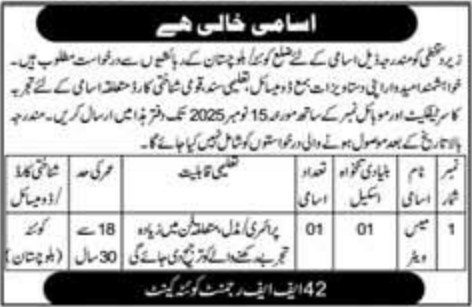 Candidates, if you are seeking a Mess Waiter Job Vacancy 2025 in Quetta, yes. Then it would help if you tried to complete this Mess Waiter Job because here you can easily apply for this vacancy: Mess Waiter.